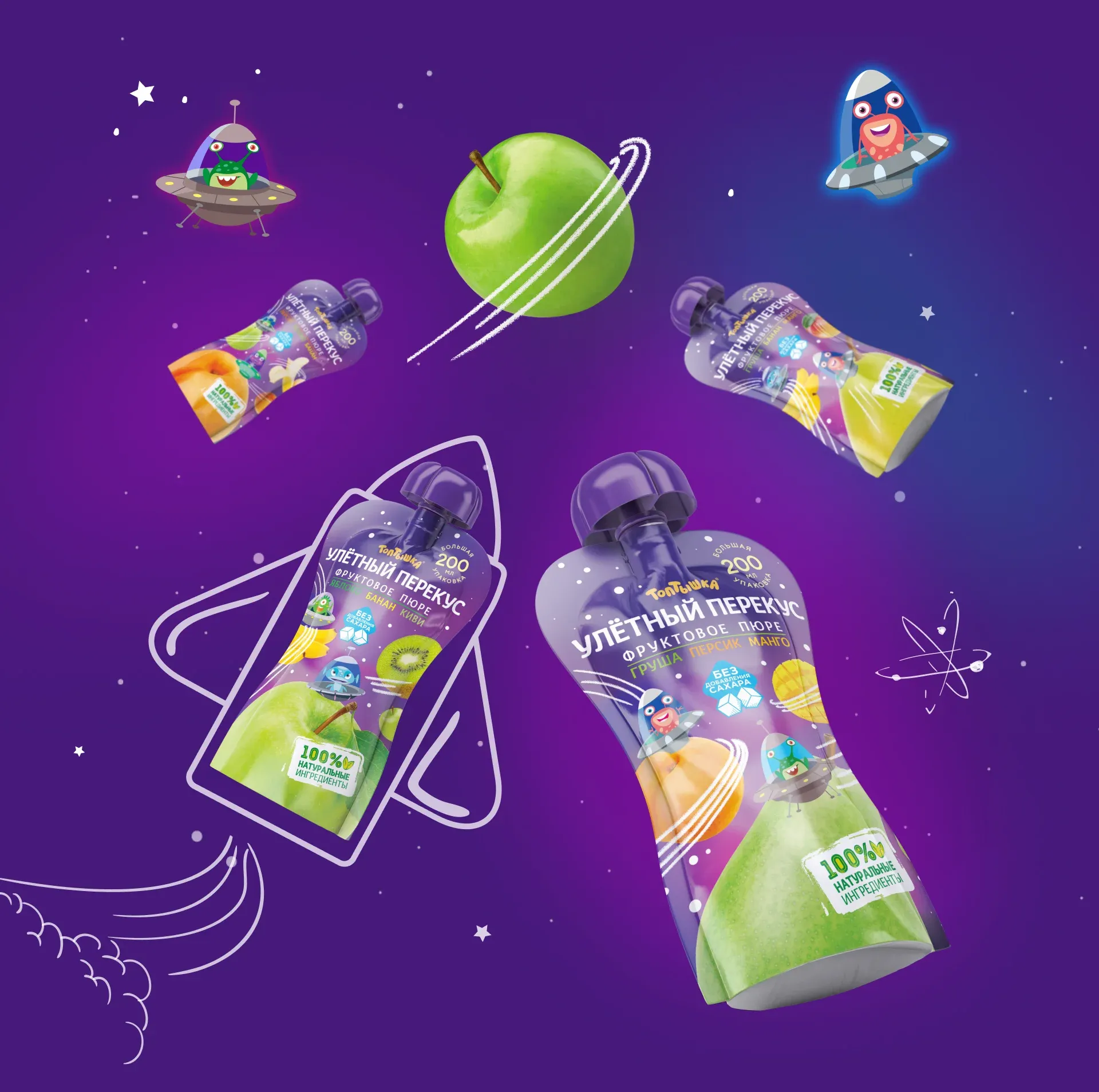 Комбинат запустил новую линейку детского пюре из фруктов. Оставаясь верными использованию только натуральных продуктов в своих пюре, комбинат ориентировал новую продукцию на немного другую целевую аудиторию: в фокусе внимания бренда оказались дети старшего дошкольного и младшего школьного возраста, а также их родители.